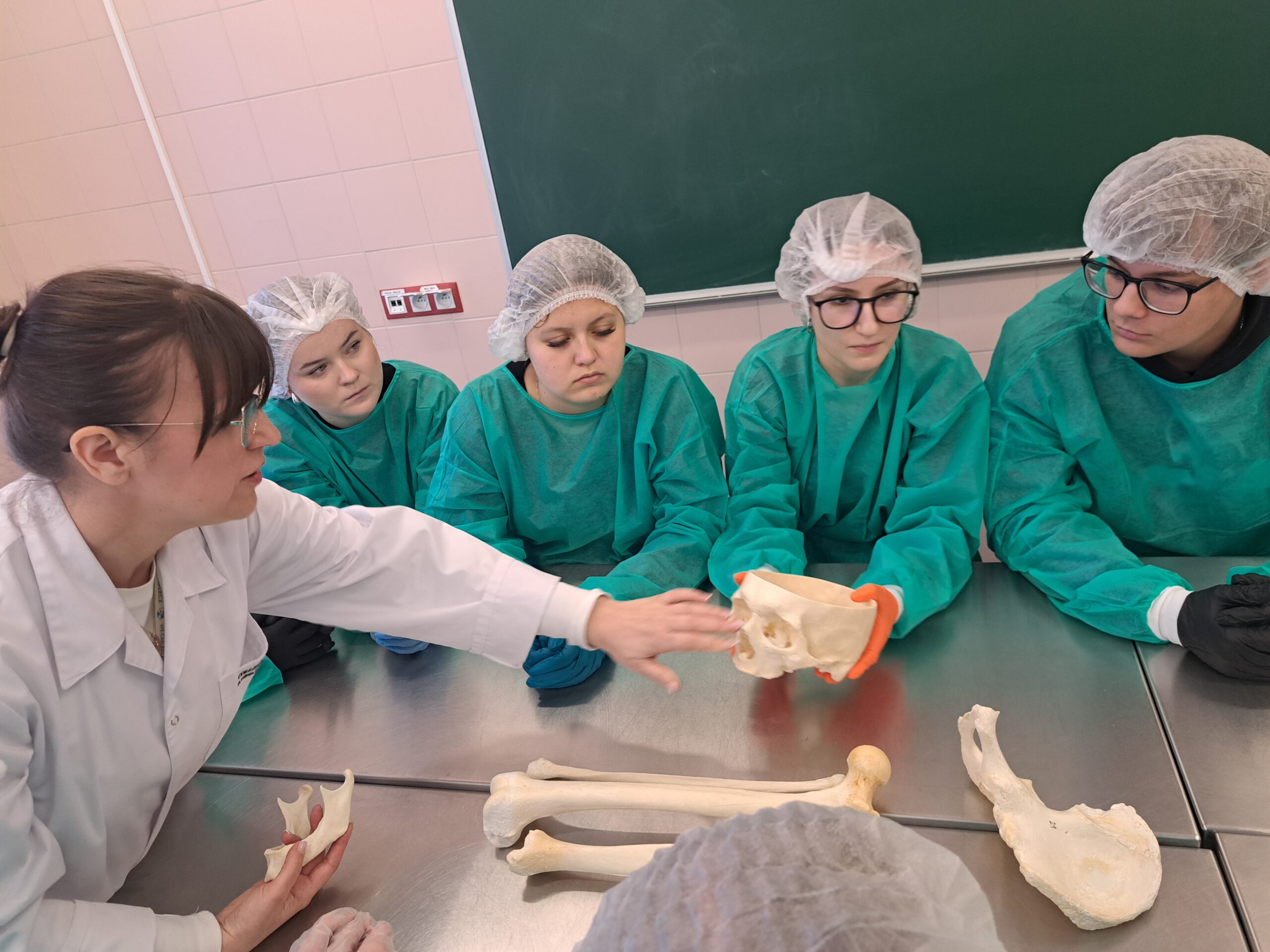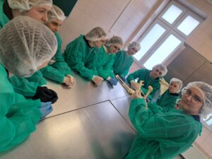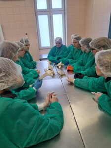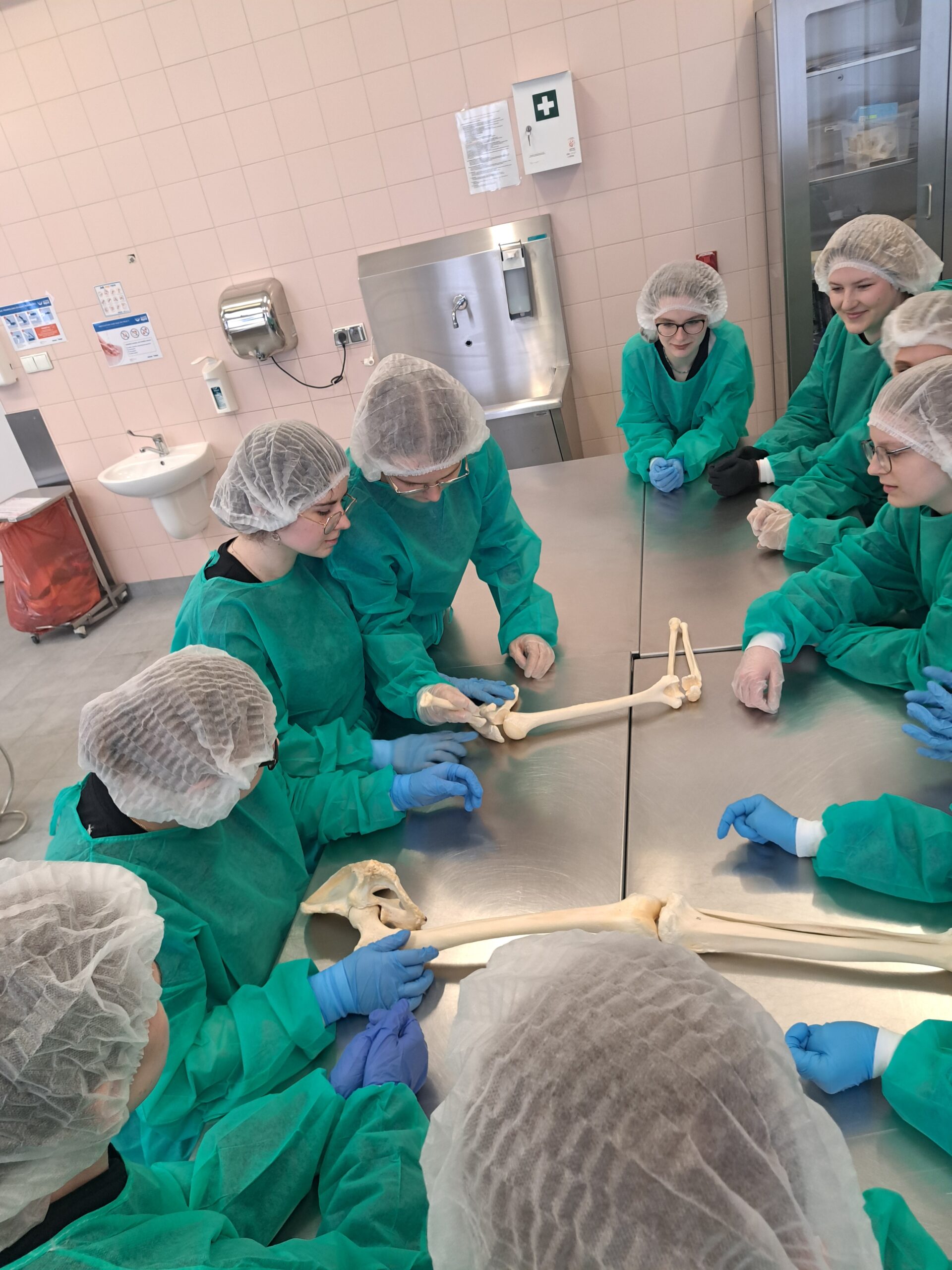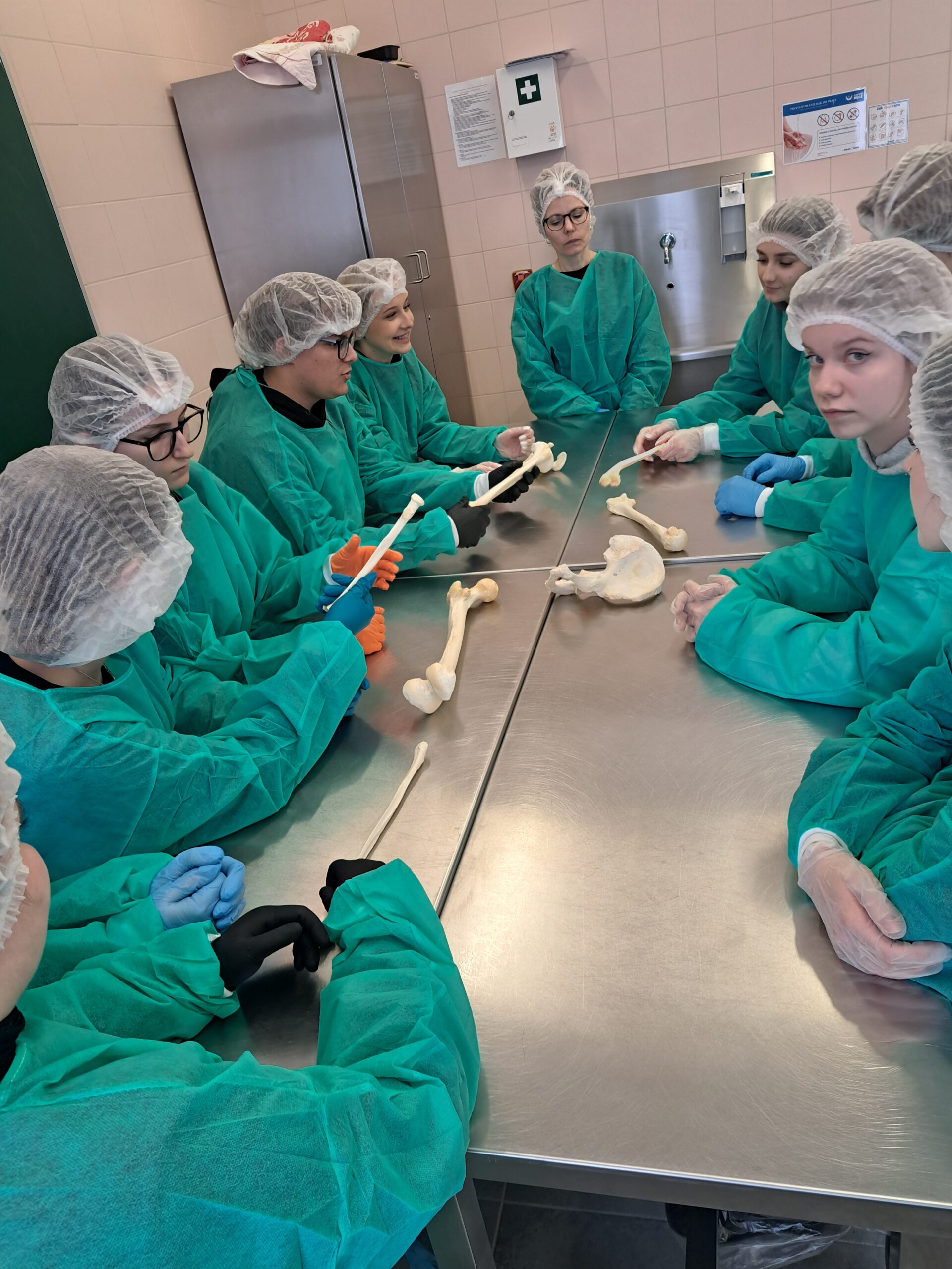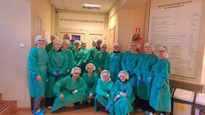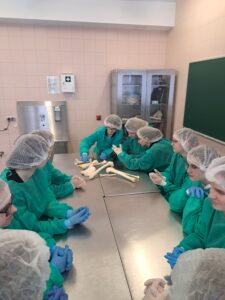 Podczas zajęć maturzyści mieli niepowtarzalną okazję wejść do prosektorium i zobaczyć z bliska, jak zbudowane jest ludzkie ciało. Pracując z preparatami mokrymi i suchymi, mogli pogłębić swoją wiedzę w sposób praktyczny, znacznie wykraczający poza szkolne podręczniki. Dla wielu uczestników było to inspirujące doświadczenie, które być może stanie się pierwszym krokiem na drodze do kariery medycznej.